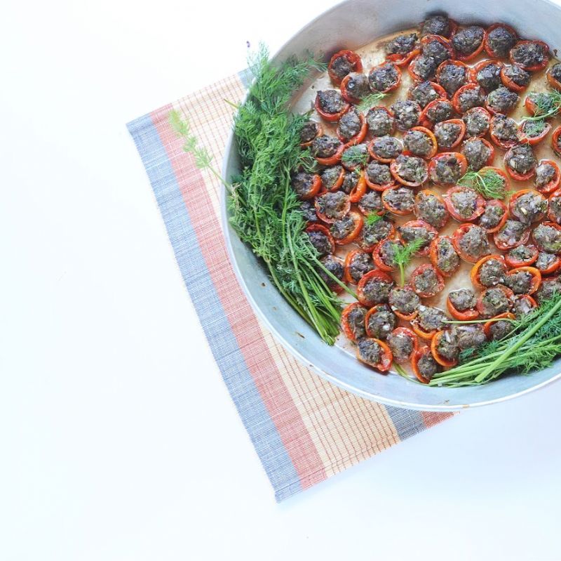 מנה בהשראת רפי כהן. התאהבתי בממולאים בעבודתי במסעדת פאסטל האגדית כשעבדתי דווקא בפרונט, כמנהלת אירוח שם. התמלאי געגוע ואהבה למשחק הירקות והדגנים והתחלתי להכין מדי שבת.
